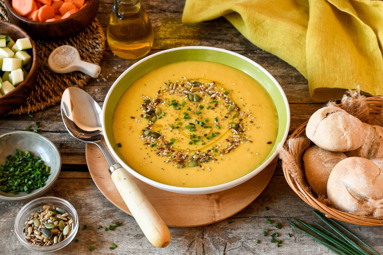 Natural, nutritivo y lleno de sabor gracias a la cúrcuma, la sal del Himalaya y la levadura en copos, una excelente fuente de vitaminas B. Ideal para cenas ligeras o como primer plato. Receta para 3 personas: Ingredientes principales: 300 g de calabaza 2 patatas medianas 2 zanahorias 1 calabacín 1 cucharada de sal rosa […]